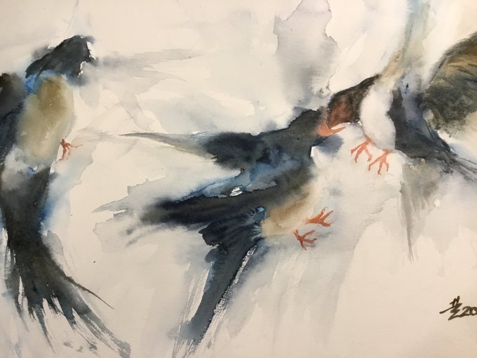 Watercolor 12x18. Have a great night! #GoodNightTwitterWorld #artistsontwitter #art #watercolorpainting #birdart #aquarellepainting hannahwong19@gmail.com https://t.co/spYHzvTHhI