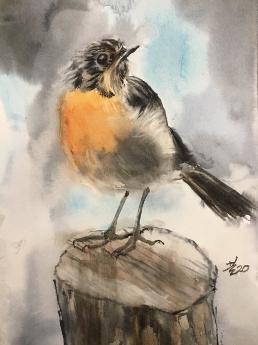Watercolor, 12x18. Enjoy every precious second and love people around you. #art #watercolor #painting #bird hannahwong19@gmail.com https://t.co/spYHzvTHhI
