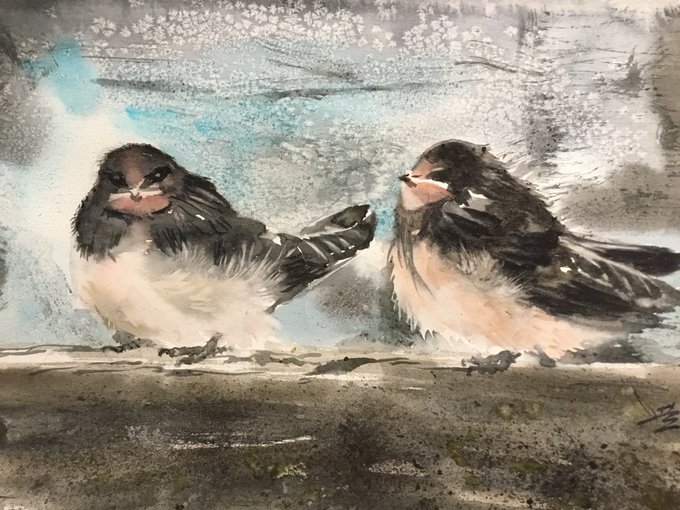Watercolor. Birds are one of my favorite subjuects to paint. They fly, play and sing with happy souls. #art #watercolor #painting #bird #aquarelle hannahwong19@gmail.com https://t.co/spYHzvTHhI
