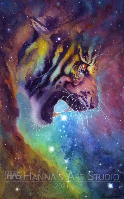 #TraditionalArt #Tiger #Nebula #Pride #Fierce #LGBTQIA #ArtForSale #Etsy #EtsyShop #Prints #Merch #Space #Watercolor