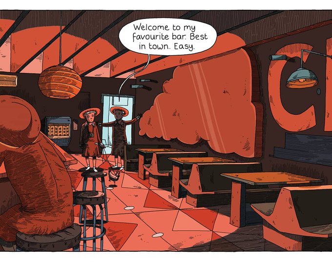 Panel thumbnail of Laurie throwing shapes in her favourite bar. Part of the @selfmadehero anthology I Feel Machine out in September. Other artists are: @shauncytan @krentable @tilliewalden @eriksvetoft @boxbrown @hanshawjulian #comics #graphicnovels @ThoughtBubbleUK @GoshComics