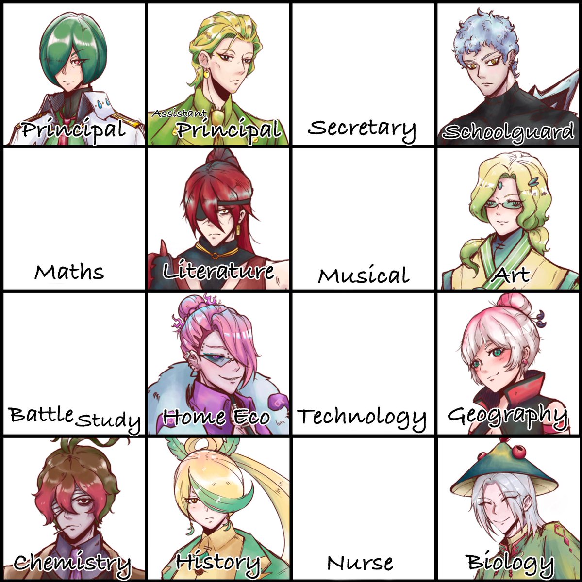 - Childhood friend of Leopantra, now is temporary Literature teacher