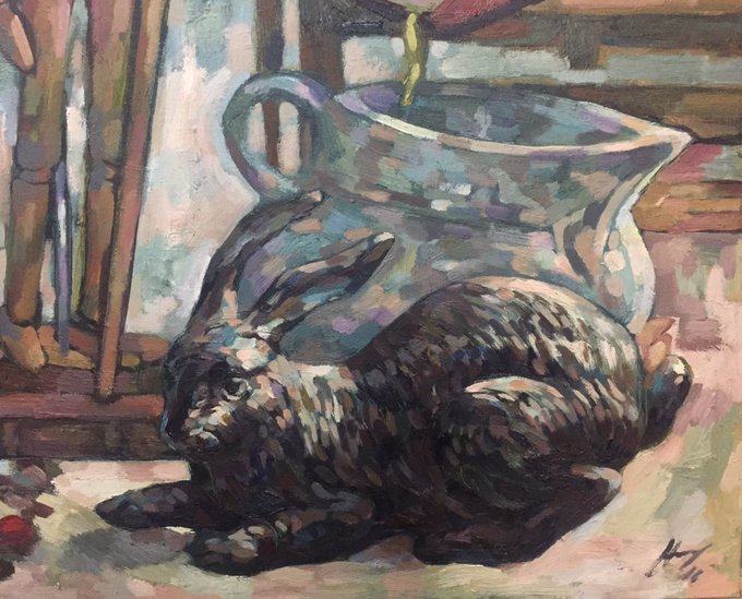 #lapin #peinture à l'huile sur toile , #atelierboubok #harryboudchicha , #naturemorte #art #artist #paris14 #ArtClass #finearts