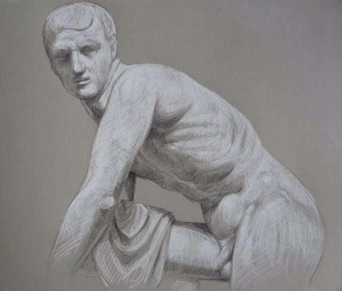 #Dessin réalisé au musée du #Louvre jeune homme nu assis au bord de la mer (1836)Paris #TwitterFirstFriday