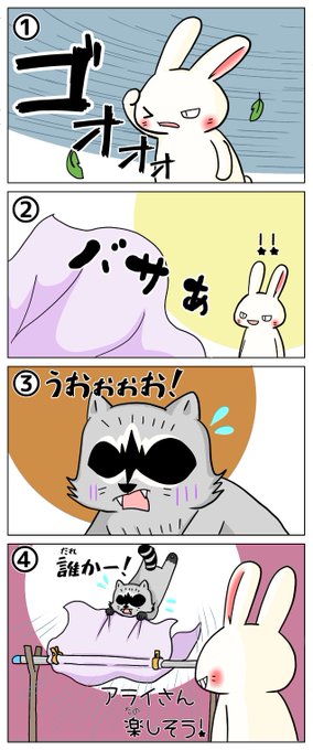 今日のシシシうさぎ4コマ漫画「強風」本編とおまけイラストはこちら。 #おまけ付き4コマ漫画 #シシシうさぎ #強風