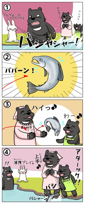 今日のシシシうさぎ4コマ漫画「シャケ」本編とおまけイラストはこちら。 #おまけ付き4コマ漫画 #シシシうさぎ #シャケ