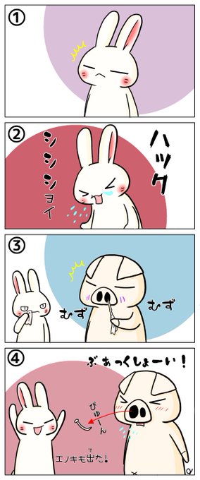 今日のシシシうさぎ4コマ漫画「くしゃみ」本編とおまけイラストはこちら。 #おまけ付き4コマ漫画 #シシシうさぎ #くしゃみ