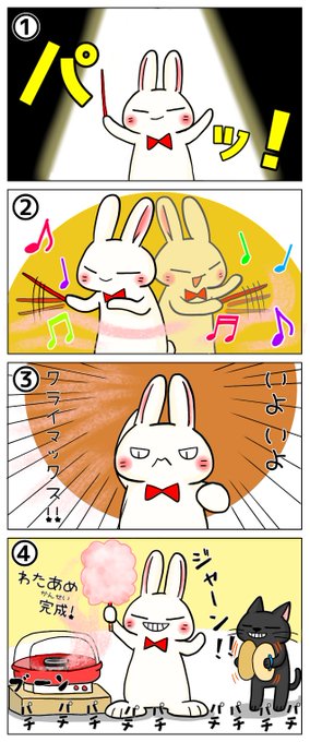 今日のシシシうさぎ4コマ漫画「指揮」本編とおまけイラストはこちら。 #おまけ付き4コマ漫画 #シシシうさぎ #指揮 #リメイク