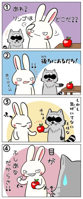 今日のシシシうさぎ4コマ漫画「とりあい」本編とおまけイラストはこちら。 #おまけ付き4コマ漫画 #シシシうさぎ #とりあい #リメイク