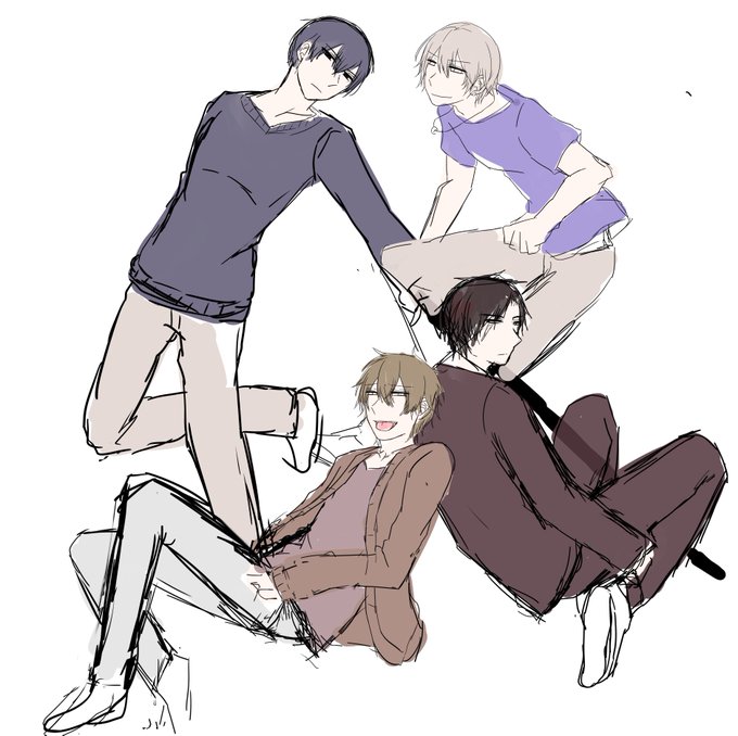 少しだけ線を整えたけれど、まだラフ 千秋のガリガリさと、その他3人の対格差を頑張りたい