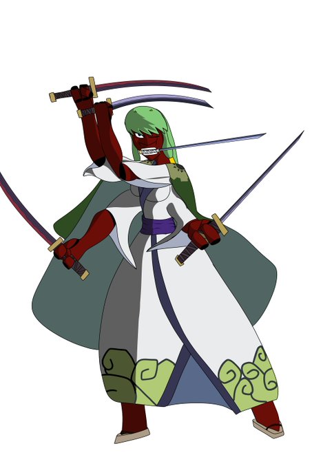 Here is Nepetal dressed as Zoro from the current arc of #OnePiece #fanart #halloweencostume #monstergirlmonday #Cidae