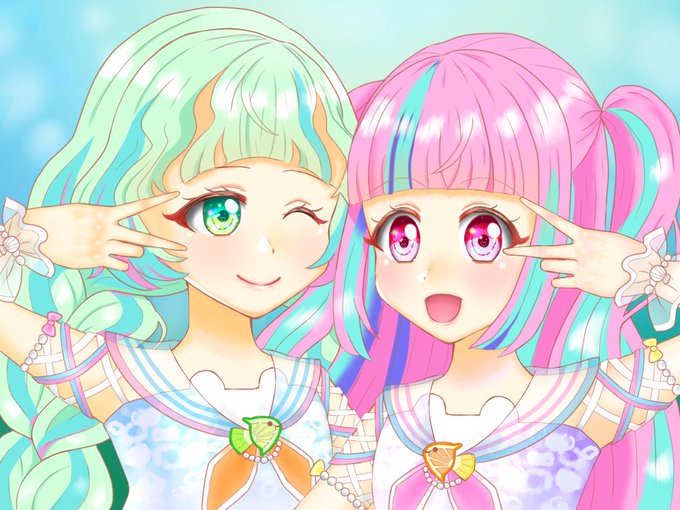 あおいとしおんちゃん 誕生日かなり過ぎちゃったけどおめでとうございました! 1月生まれのこのふたりは来年もペアで描くんだろうなという感じ #アイカツ