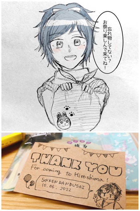 ライブ前夜に安定のお見送りイラストとメッセージをもらってウキウキ出陣☺️犬張り子の刺繍の風呂敷包み…愛が限界突破している。現地集合した友達からはウェルカムカードを…その心遣いが嬉しすぎました😭✨みんなの衣装、とっても素敵だったなぁ🙏