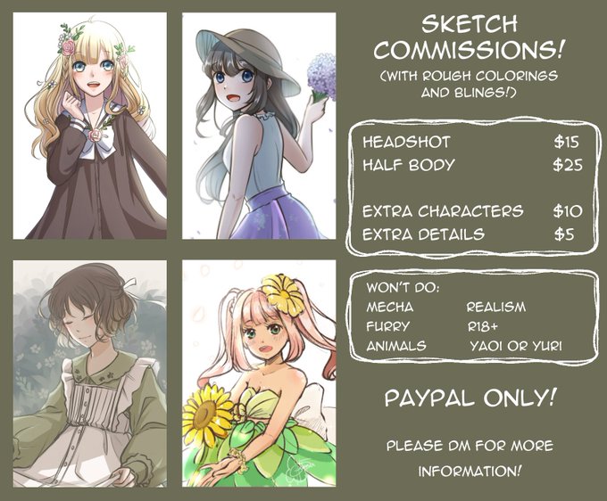 Opening commissions! Please DM me for more info (●˙꒳˙●) Retweets appreciated! Thank you!