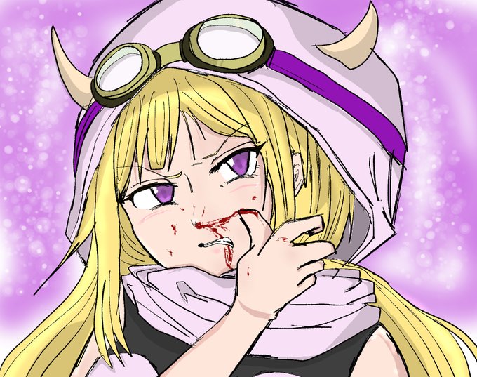 #マギレコ #深月フェリシア 如何せん目つき悪くなりすぎたフェリシアをくらえ! こういう血がある絵は白黒の方が赤が映えてカッコいい 気がした