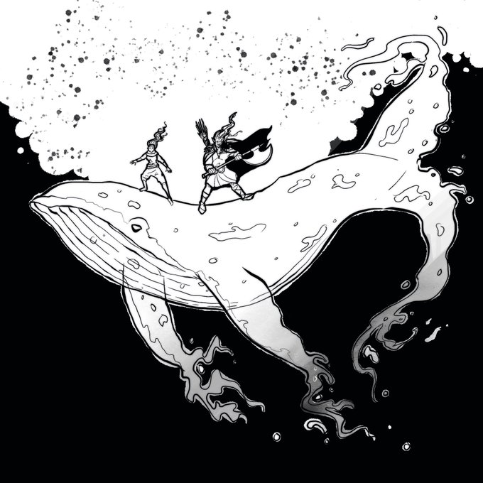 Those dudes in the temple@full@on tried to toss Trula into the chasm!! But after a quick and dirty fight she managed to use the charged green ooze to conjure a creature from the ether to help them escape! #inktober2018 #inktober #inktoberwhale #storytelling