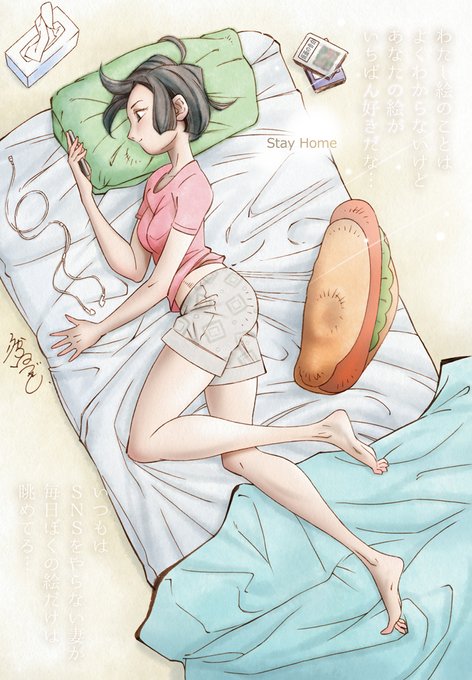自粛中の嫁 #嫁 #自粛中 #おうち時間 #自宅待機 #StayHome #コロナに負けない #コロナに負けるな #イラスト