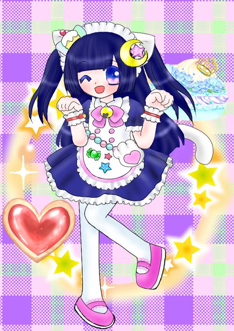 めるるちゃんのこの衣装、デザイン変更しようかにゃ…裾の十字架が重そうに見えるにゃーん…(´・ω・`) #うちの子かわいい #イラスト #創作