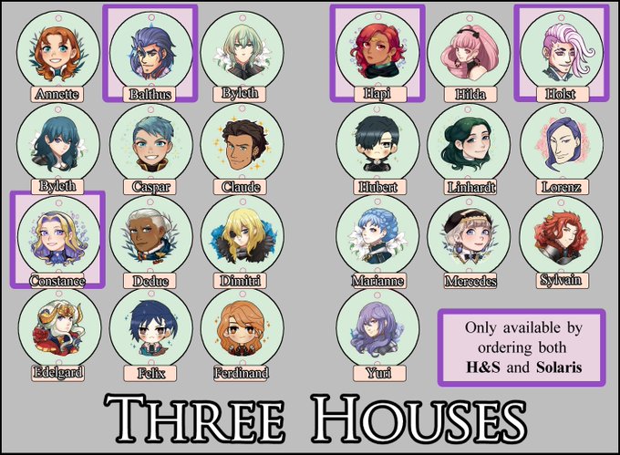 Here are our #FireEmblemThreeHouses chain charm designs! More revealed tomorrow!