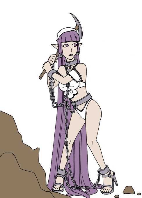 Poldara goes to prison and breaks rocks in her heavy chain shackles and metal high heel sandals ;) featuring the cute uniform with hat! Who doesn't like elf bondage lol