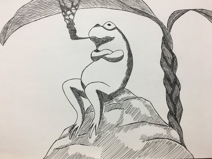 全ては夏休み前に描いたカエルが始まりだった…(一番左だけ鉛筆です✏)