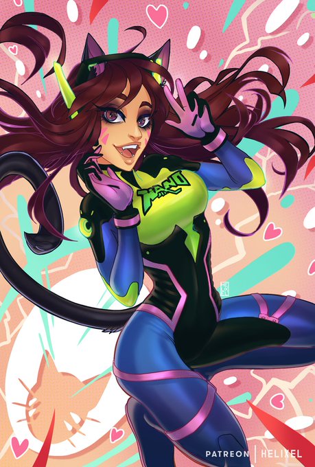 One of last months patreon pinups! Neko https://t.co/xEf68wyAbu won the polls, and this was before the official nano skin came out, so it's a little different. But anyway, still cute and fun! There are more versions I'll put up soon. 😸 @PlayOverwatch