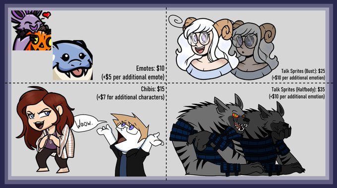 Commissions are now 🚨OPEN🚨! Now with a significant price hike and new categories to choose from! (Also, only 10 slots will be available.)