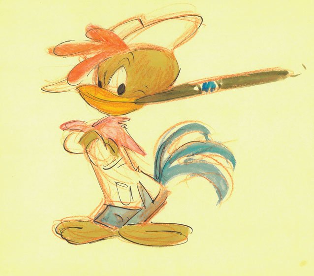 About the character: At one point another 'South of the Border' project by Disney was in development for which a group of artists traveled to Cuba. Among them was Fred Moore (my hero!), who drew a number of character design sketches of this little rooster.