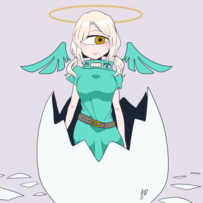 #仮単眼版深夜の真剣お絵描き60分一本勝負 お題:【卵・玉子】・【天使】