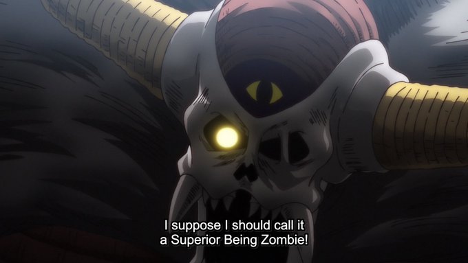 As I mentioned last time, the Superior Zombie also seems like a possible inspiration for Special Zombie Oars in One Piece, right down to the similar way Zaboera/Moria control them from the inside. The anime adds a nice effect where the zombie’s eye switches off when Zab emerges.