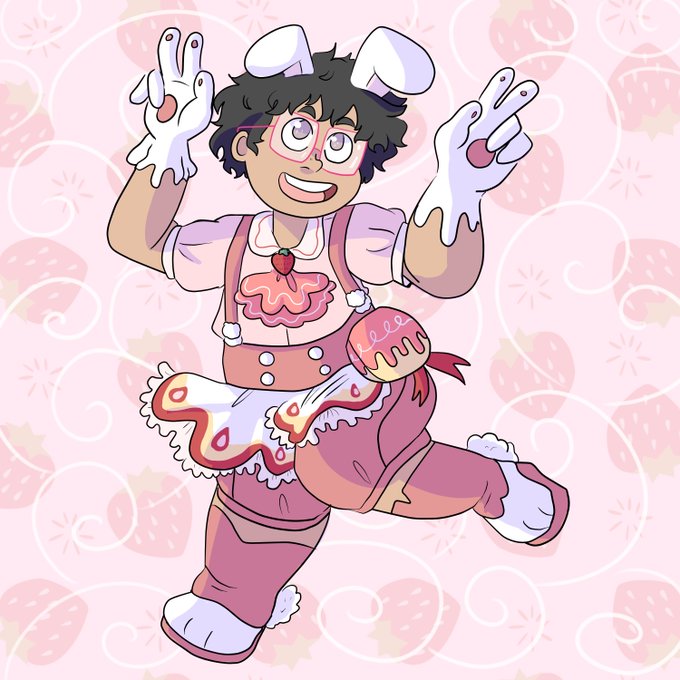 my latest magical commision is done! for the extremely kind @ultrakirby64, a full sized, full shaded and background-inclusive custom design inspired on the adorable cure whip! 🐇🍓❣️✨ ready to serve!! thank you so so much for your preference! 🥺😩❤️❤️