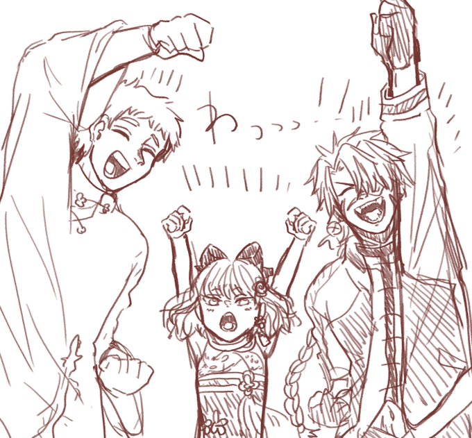 前にりぅちゃん(@doolly_A )と線画交換したやつをで構図交換(?)のような神々の遊びをしました。 もうあれです、左が公式です。 ありがとうーーーー!!🧡🧡🧡🧡🧡