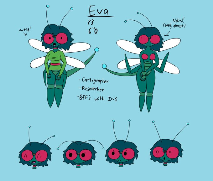 If any of y'all remember my character Eva, here she is, with an updated reference sheet!