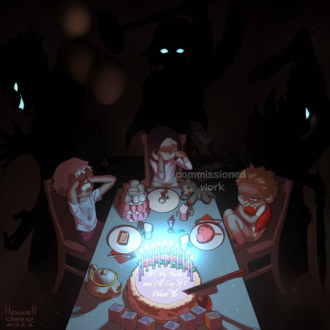 #Commission for 4 Your Entertainment from Amino and their #OC Wild-Card in childhood! Birthday party with babies #Dabi and #Hawks, art inspired by song of Melanie Martinez “Cry Baby”~