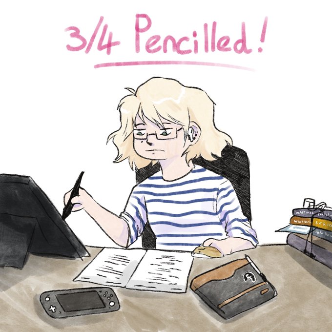 I am very close to being done with the pencils for my graphic novel so here’s a drawing of me very enthusiastically working on this project