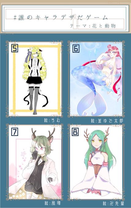 #誰のキャラデザだゲーム 参加させていただきました! ①のキャラを描かせていただきました なかなか難しかったけど楽しく描かせていただきました! さて本題です私がデザインしたキャラはどの子でしょう? リプのアンケートから1つポチッとしてみてください!