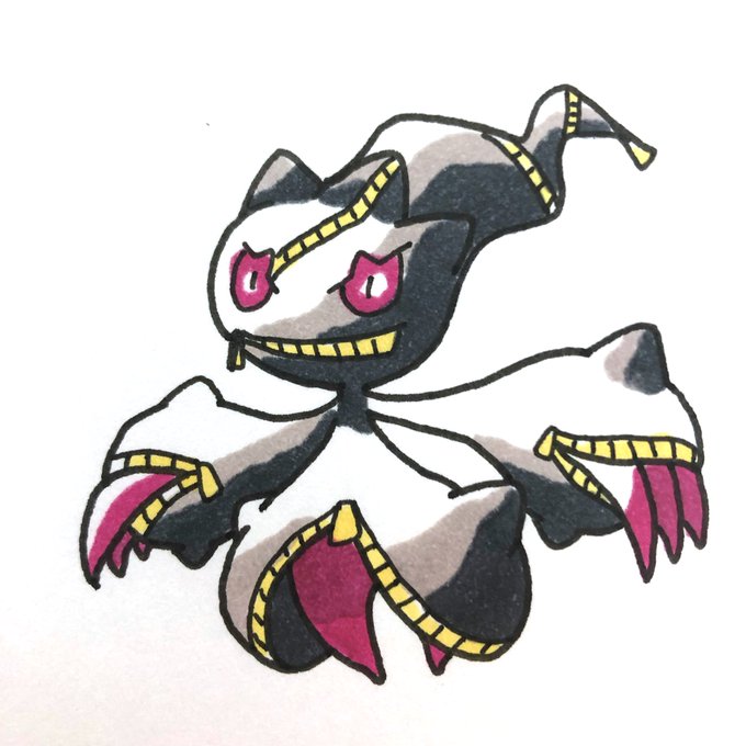 アナログでメガヘルガー、イエッサン♂、ヒヤップ、トリミアン(スター)を描きました!!! メガヘルガーちょいミスった