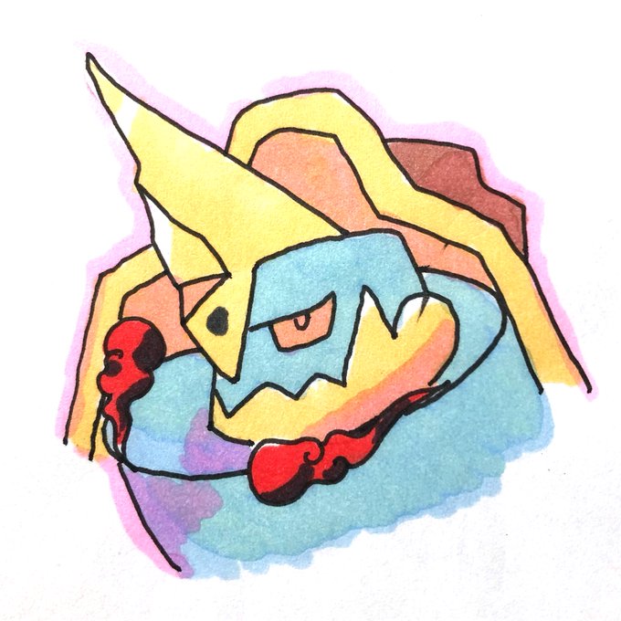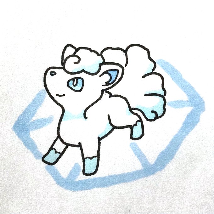 アナログでアローライシツブテ、バッフロン、フリーザー、ニャスパーを描きました!!! アローライシツブテってイケメンということがわかりました!!!