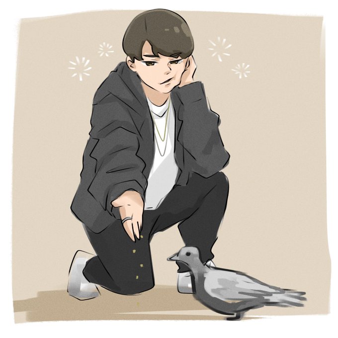 これはBillie Eilishに憧れてハトに餌をあげてるつるぼー #鶴房汐恩 #JO1 #JO1fanart
