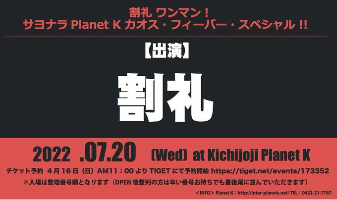 7/20(水) 吉祥寺 プラネット K