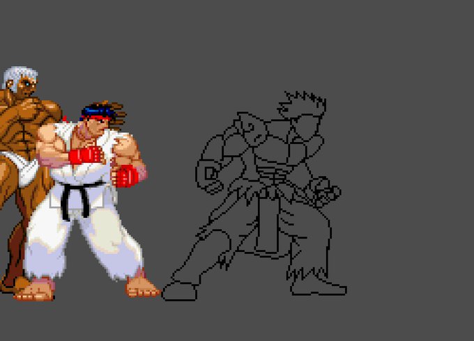 Outlines are done. Pretty jumpy in some areas so I need to work on that along with refining the overall stance. #WIP #Pixelart #Sprite
