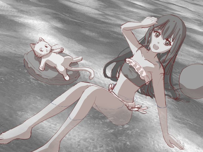 pixiv今日のお題が「浮き輪」だったので去年と今年の水着絵を再掲