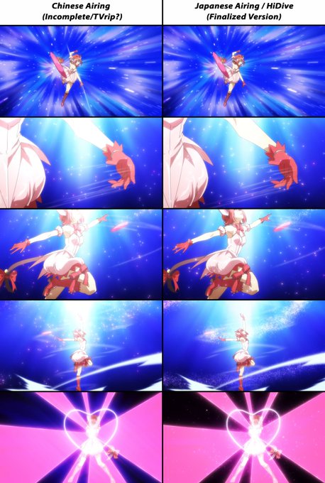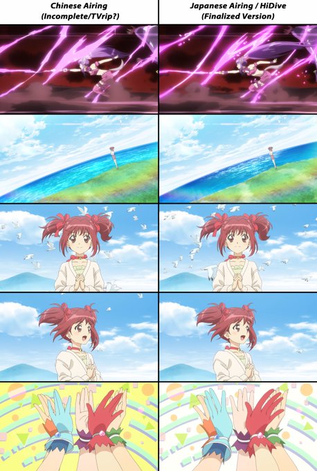 (1/4) Here are the differences in animation between the early / TVrip(?) version that the Chinese simulsub stream received and the finalized version that was used for the Japanese and English simulsub airings.