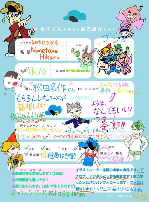 #名作くんクラスタ自己紹介カード