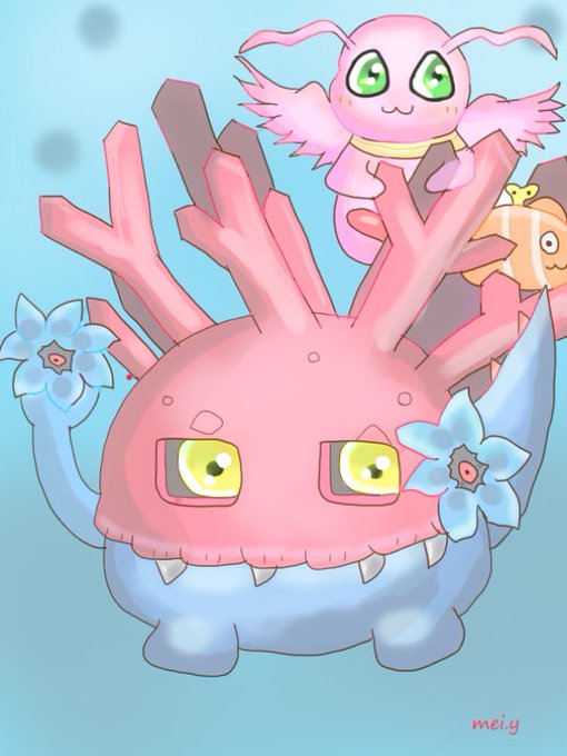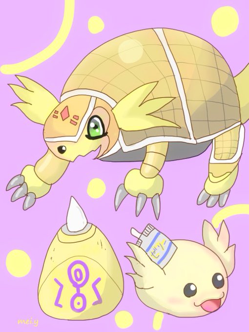 最近02のデジモン描くのにハマってる。 きのう描いたアルマジモンとウパモン! #デジモン