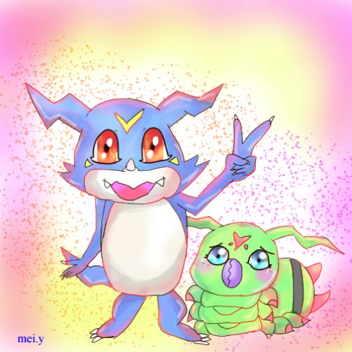 おはようございます☀️ 今日は金曜日!今日頑張れば休みだ〜 ブイモン、ワームモン描いた✏️ #デジモン