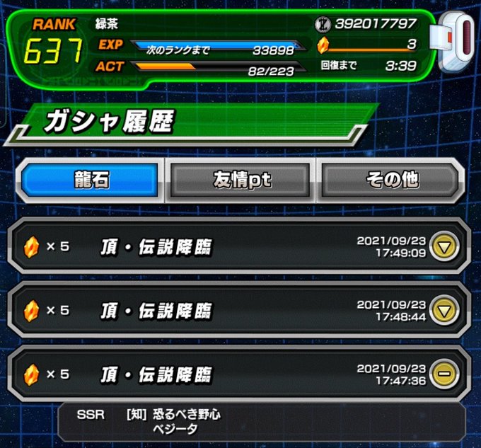ゴジータもかっこよくて悩んだけど推しのベジットひけてよかった〜ε-(´∀`*)あとは地道に石貯めてマルチパワーおまけでもらえるガシャでLFのやつもらって凸らせれたらいいな