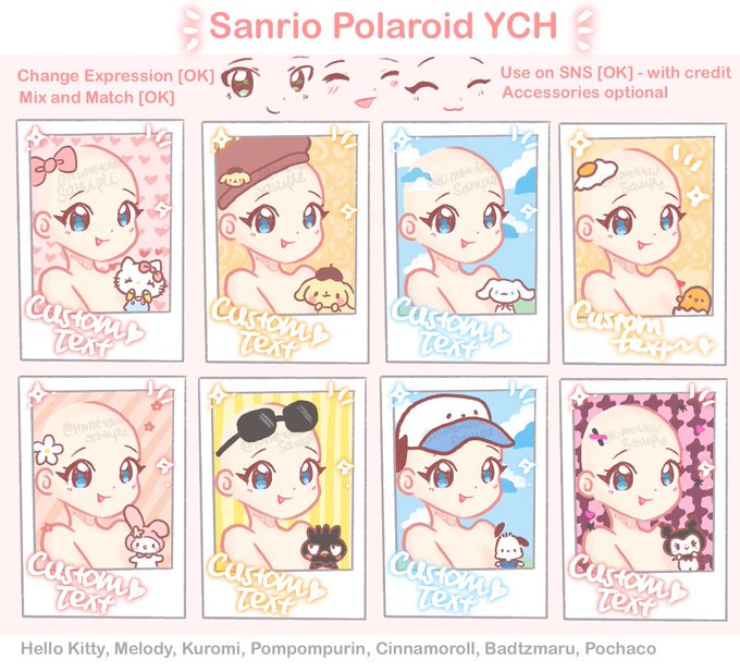 Sanrio Polaroid YCH now open for public orders!💕[Repost because Gudetama added!]🍳