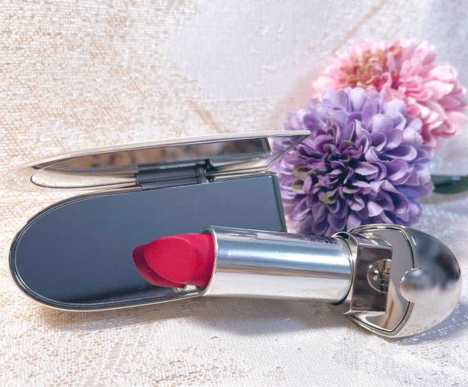 プレゼントいただいたのミテミテする🥺 すごく綺麗に唇に残る最高の💄 本当にマスクにも付かなくて感動している…ありがとう…🥲