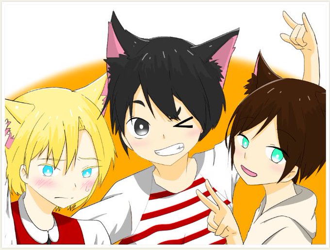 朝溶けの魔女の絵が唐突に描きたくなった。でも猫耳キャラも描きたいし…結果何かの動物の耳をつけた幼少期の3人を描いてしまった…。 #朝溶けの魔女